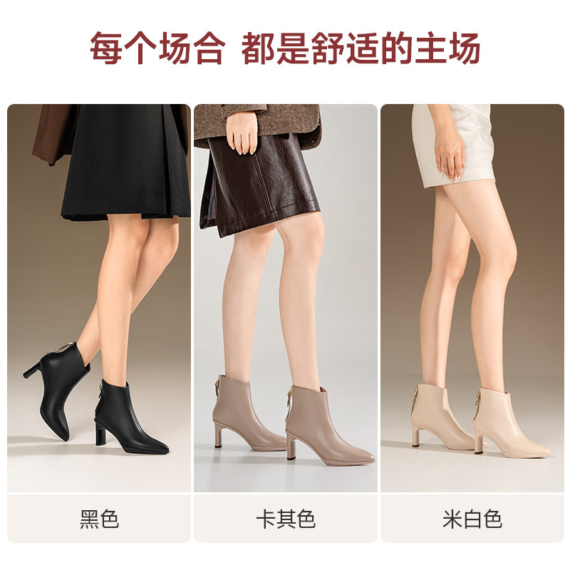 吴大叔红云鞋高跟靴子2025秋冬季新款百搭尖头女靴通勤舒适时装靴