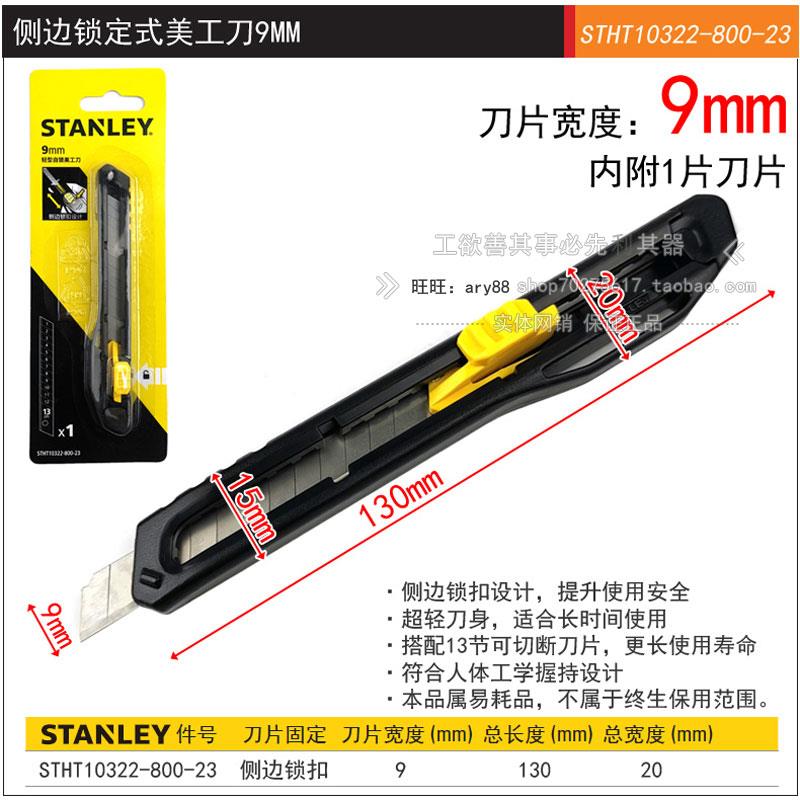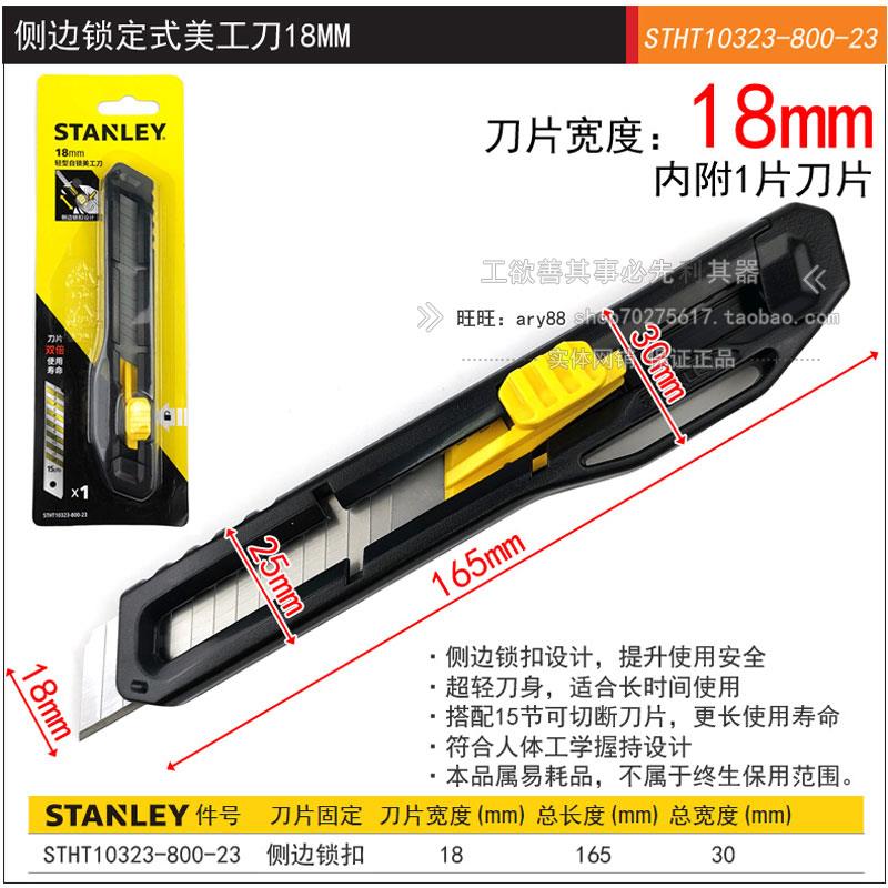 史丹利侧边锁定式美工刀9mm/18mm 轻型割刀自锁壁纸刀套装刀片