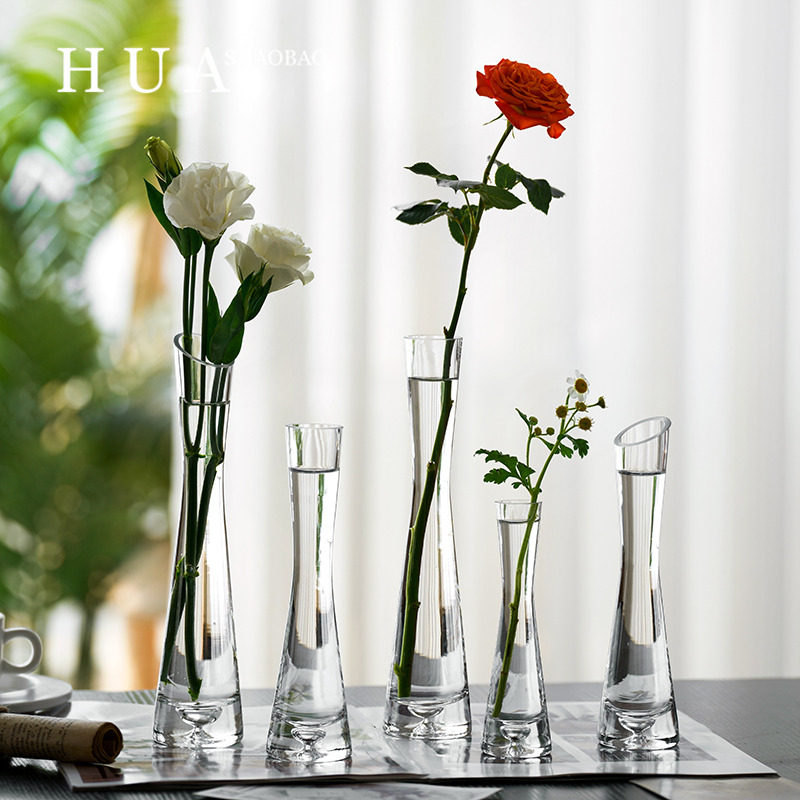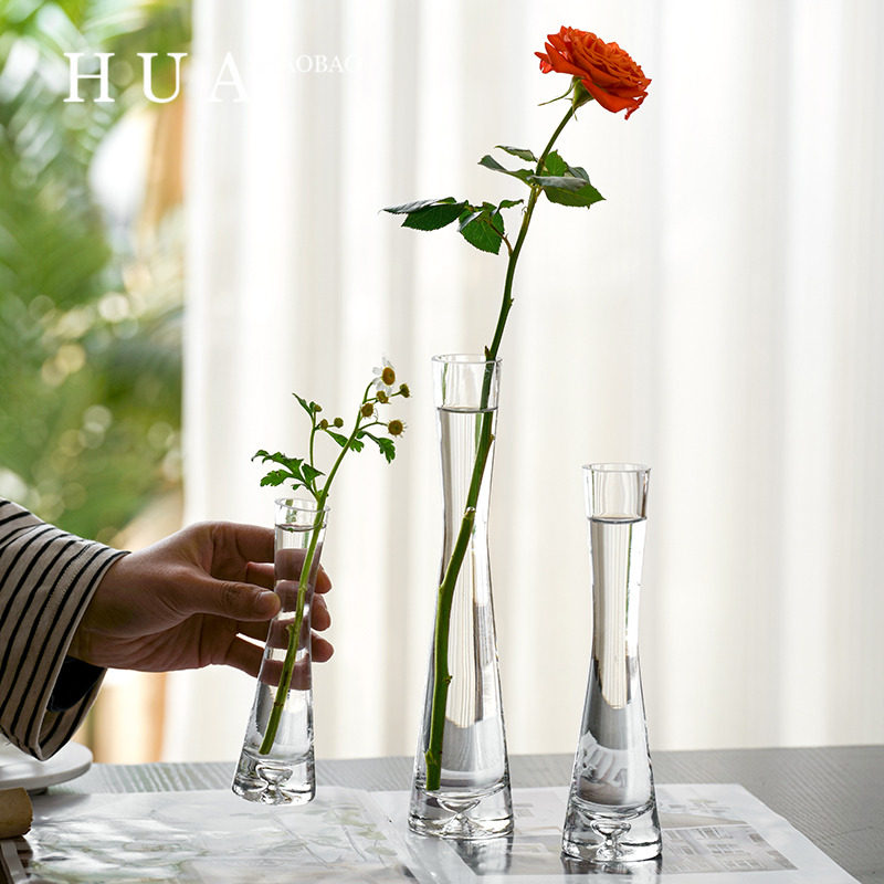 北欧风格ins风小花瓶客厅插花摆件玻璃透明水养鲜花迷你简约花器