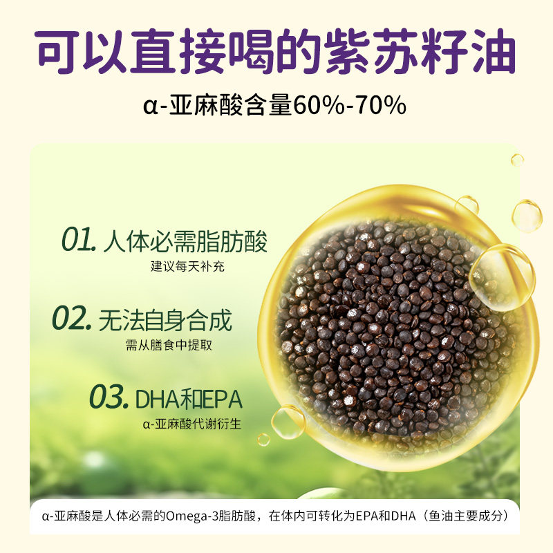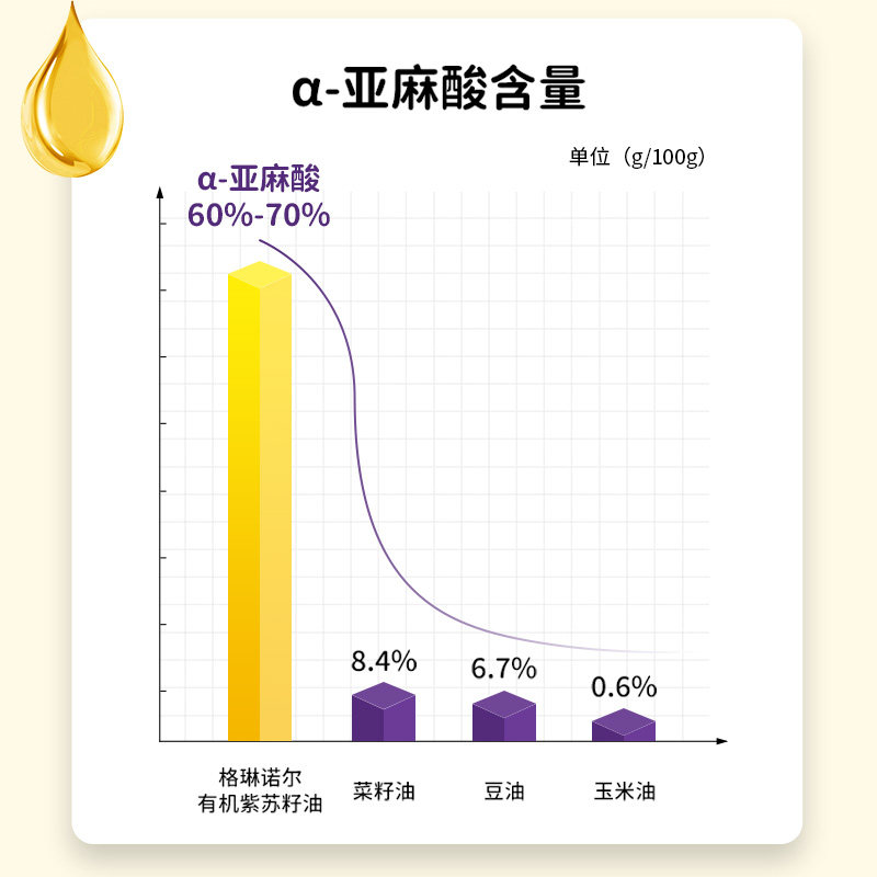 格琳诺尔 有机紫苏籽油500ml紫苏油可直饮omega3纯食用官方旗舰店