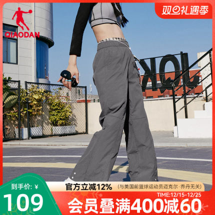 乔丹轻薄工装户外梭织长裤女生2025夏季新款梭织潮流休闲商场同款