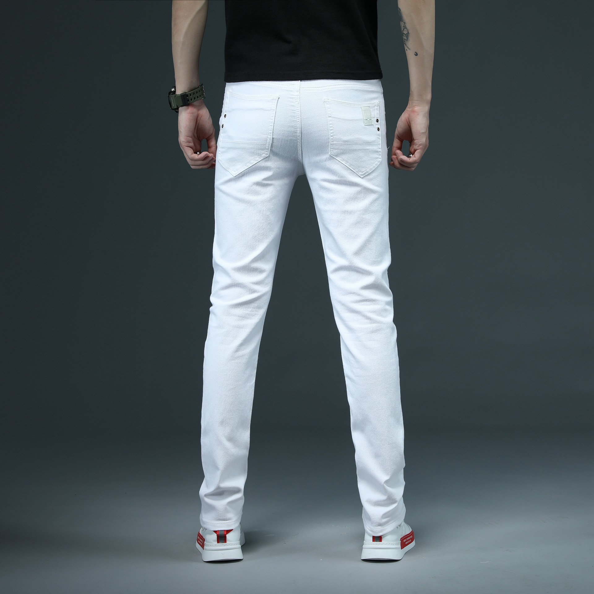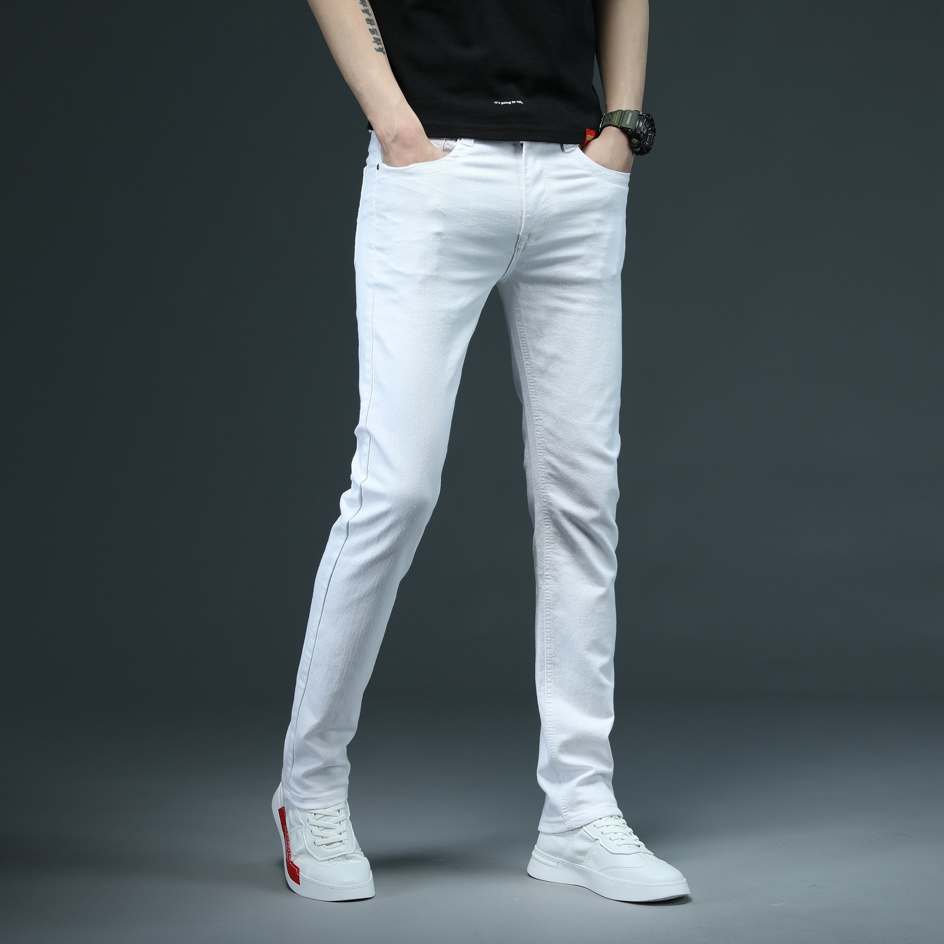 男士低腰性感弹力紧身白色牛仔裤包腿小脚裤发型师铅笔裤休闲裤子