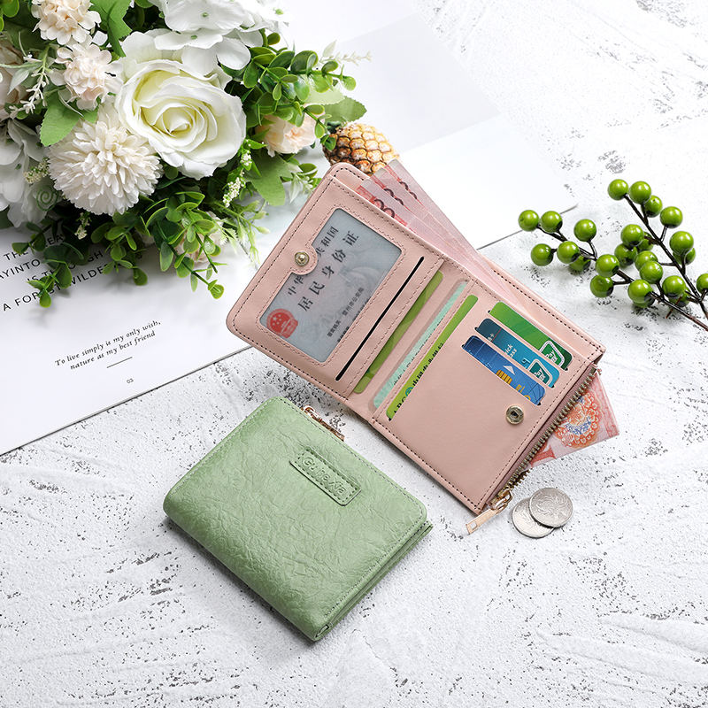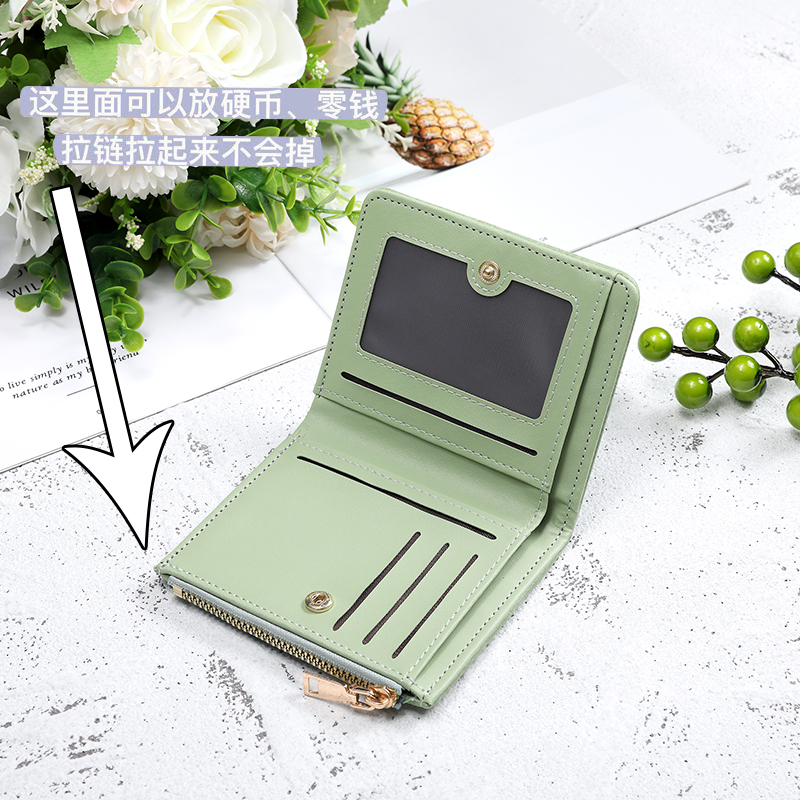小钱包~ins钱包女短款学生欧美清新折叠简约文艺搭扣卡包真皮质感