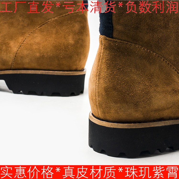 羊猄真皮马丁短靴子女冬棕色羊皮圆头绑带工装低跟百搭FB64113437
