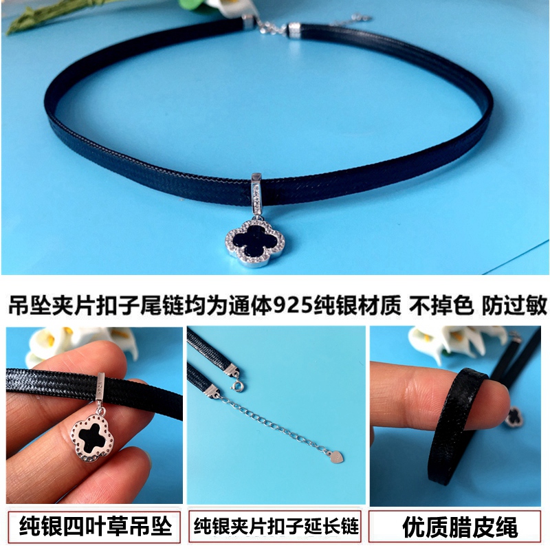 925纯银四叶草黑色项链 女 锁骨链短款颈带脖颈饰品女脖链chocker