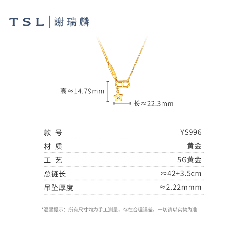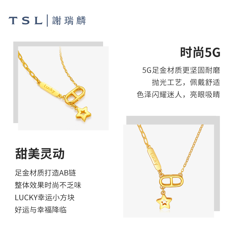 【百亿补贴】TSL谢瑞麟星星项链5G黄金足金猪鼻扣套链YS996