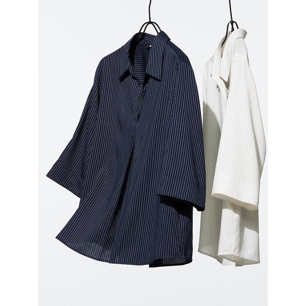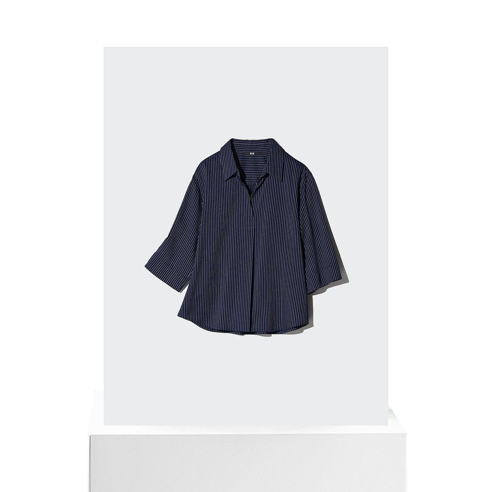 日本直邮Uniqlo Rayon Skipper 条纹七分袖衬衫 479074优衣库