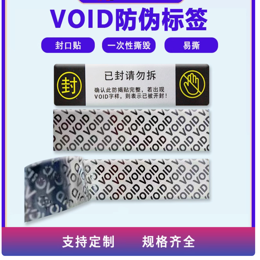 定制 防伪防拆VOID标签 撕毁无效封条 超粘性 轮胎胶不干胶贴纸