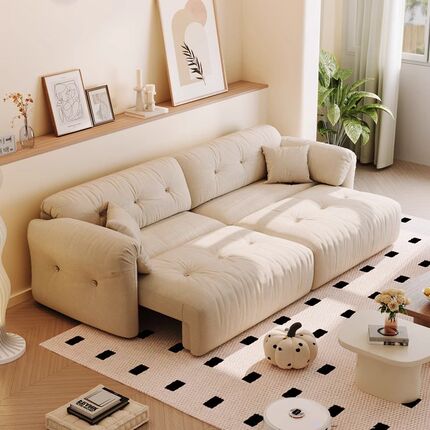 云朵电动沙发客厅简约o现代伸缩人类狗窝布艺懒人多功能沙发床两