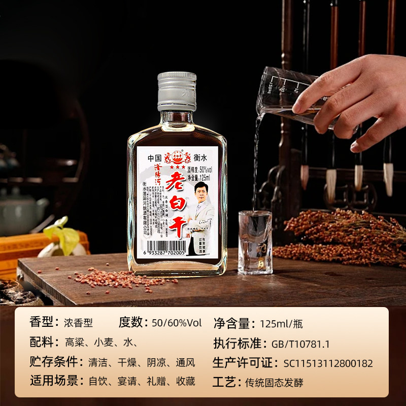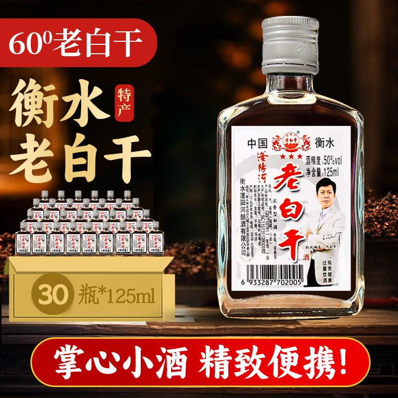 老白干50/60/68度125ml小瓶装纯粮食白酒整箱衡水特产高度高粱酒