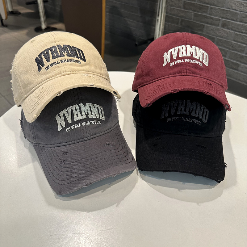 NV字母水洗棉破洞棒球帽女韩版春夏季显脸小软顶弯檐帽子男街头潮