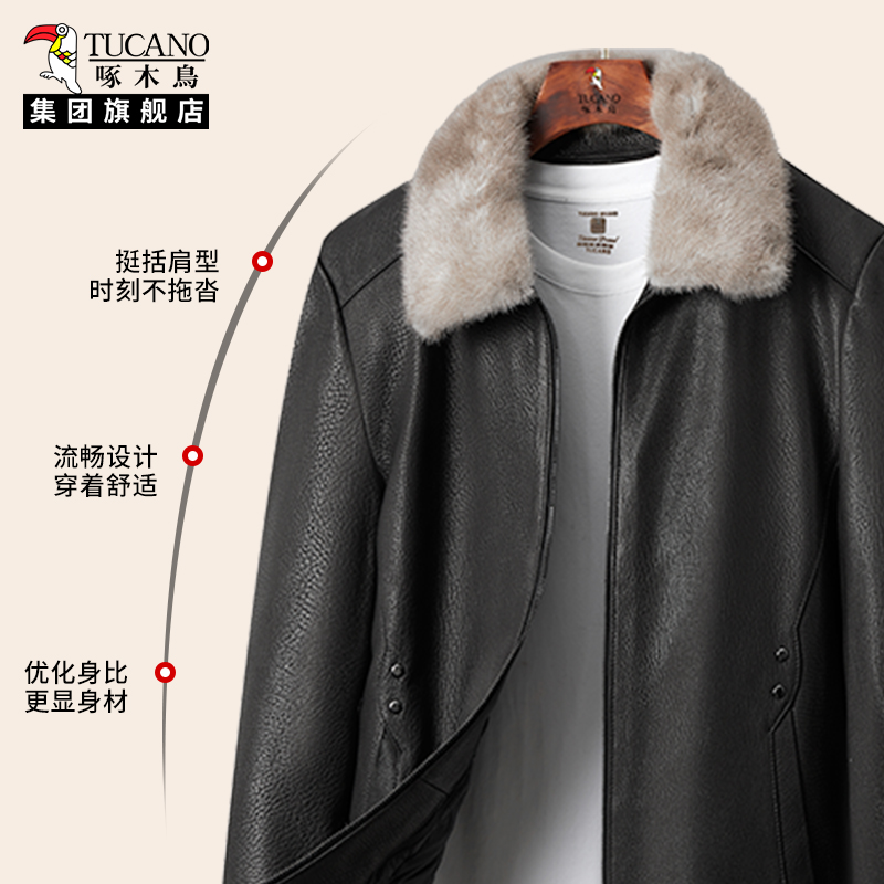 啄木鸟2025新款毛领皮衣男款秋冬真皮男士高端外套可拆内胆上衣