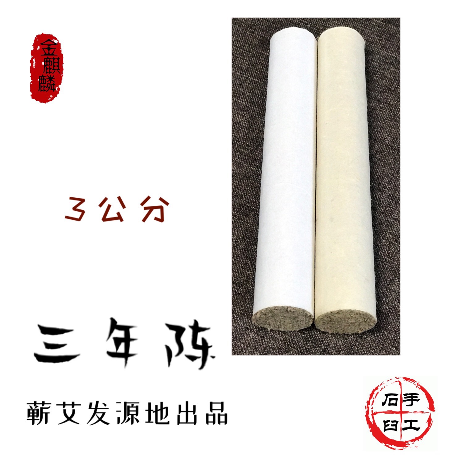 金麒麟蕲艾柱3cm艾条蚊香棒纯艾灸条柱三年陈艾叶手工艾绒悬灸棒