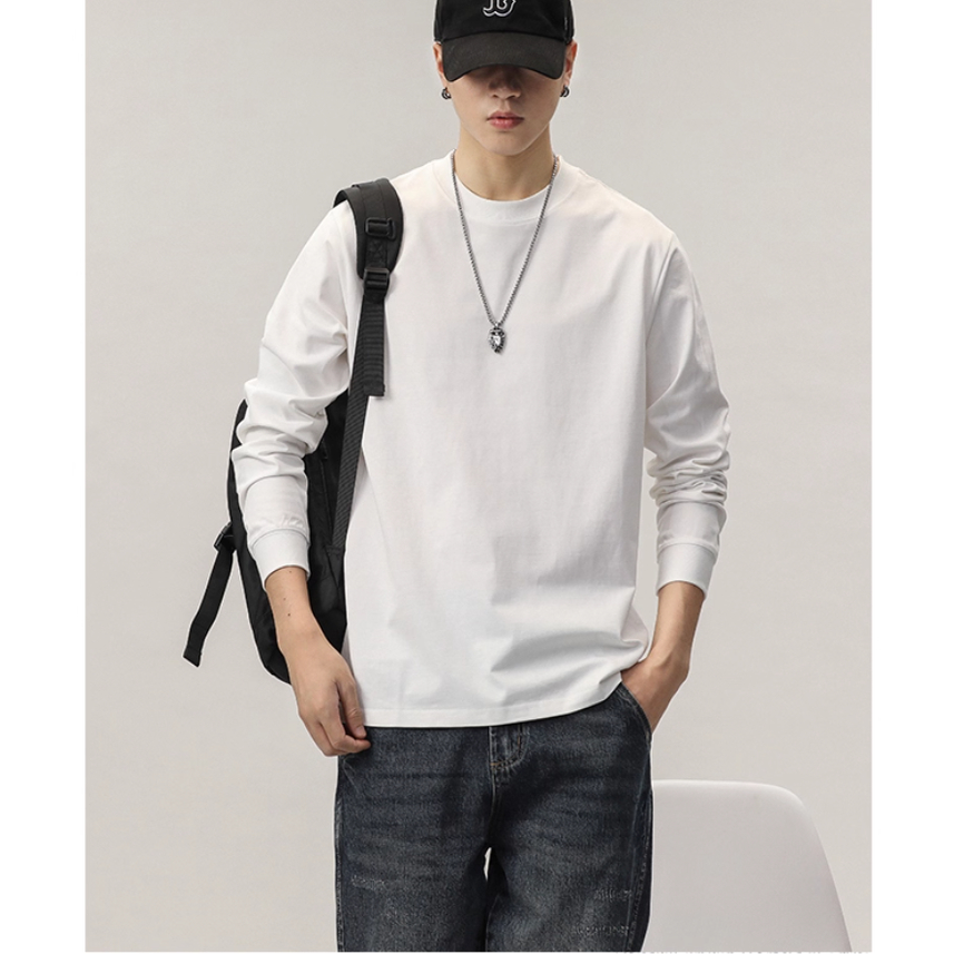 【精品】满68包邮◆2025春秋季新款男装学生青少年纯色长袖T恤潮