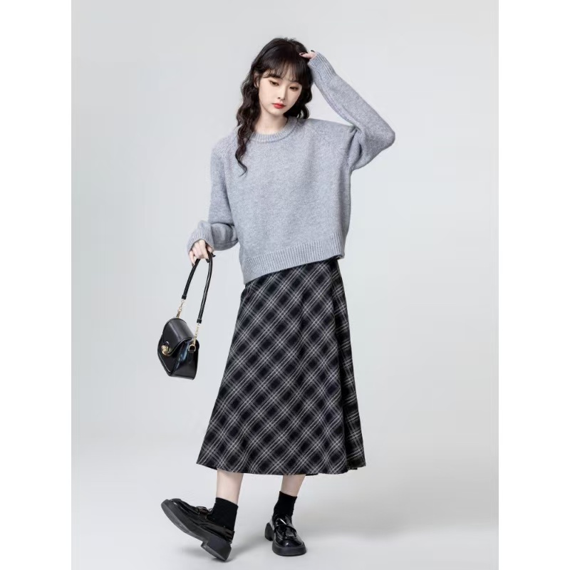 灰色圆领毛衣女加厚2025秋冬新款宽松百搭套头打底针织衫短款上衣