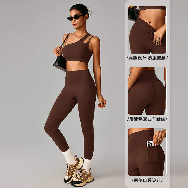 外贸透气云感高腰提臀瑜伽裤外穿口袋紧身运动跑步速干健身裤6425