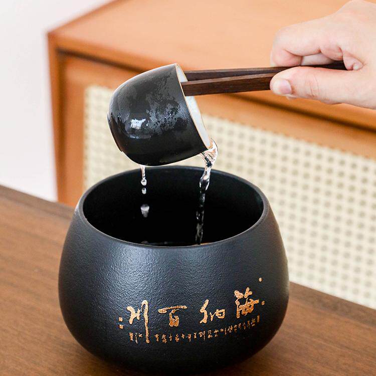 陶瓷大号茶渣缸桌面水盂茶洗复古建水废水桶配件水洗缸大容量家用