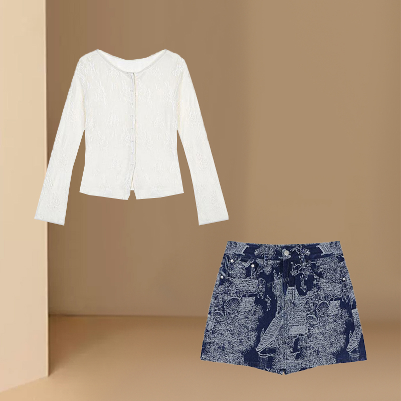 2025夏季纯色提花长袖开衫防晒罩衫百搭短裙裤气质套装洋气衣服女