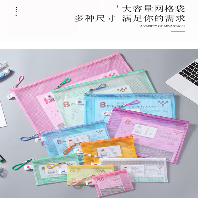 加厚透明网格铁拉链防水防冻手提文件袋收纳袋A3 B4A4 19.9包邮