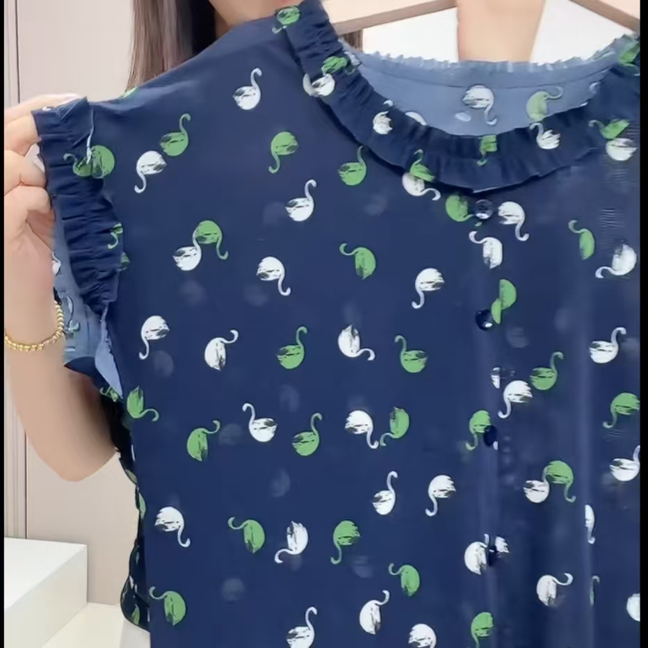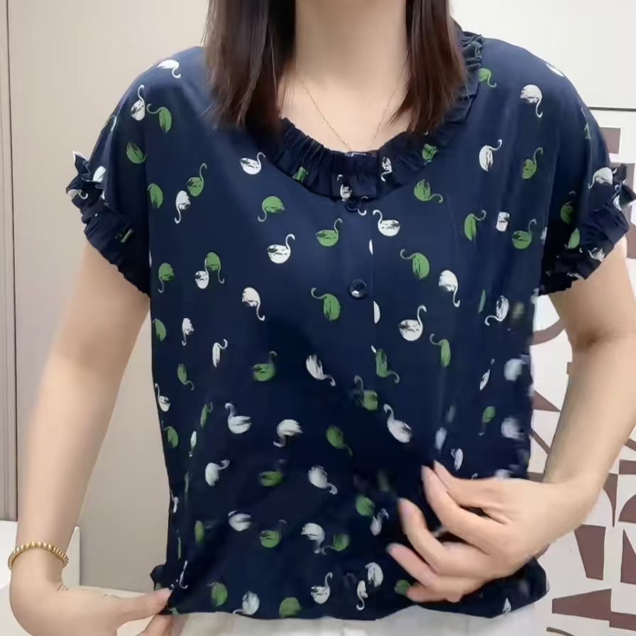 夏季新款时尚优雅气质上衣小天鹅印花女短袖百搭显瘦减龄T恤小衫