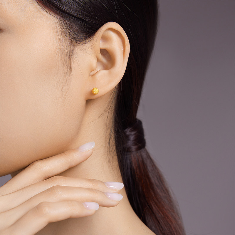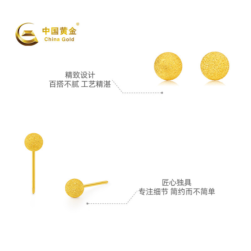 【中国黄金官方店】黄金耳饰5G圆球耳饰足金百搭新品送女友