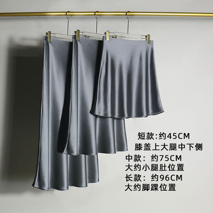 三醋酸缎面半身裙女大象灰短裙中长裙垂感显瘦新款鱼尾a字包臀裙