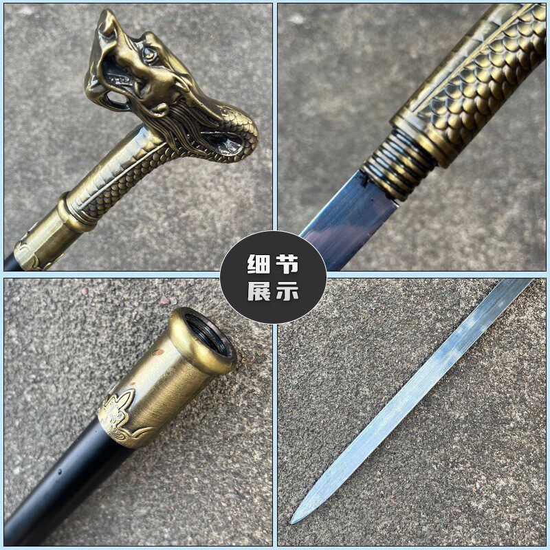 生肖蛇头龙头拐杖手杖登山防身全金属cos拍照老人棍中带剑未开刃