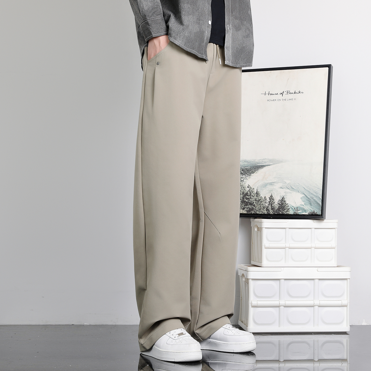 男士美式卡其色宽松阔腿裤男款秋季2025新款弯刀裤休闲裤直筒长裤