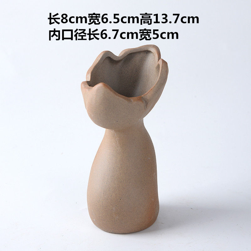 陶瓷小花瓶粗陶干花装饰摆件家居饰品现代简约客厅餐桌花器花插