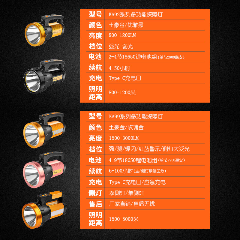 led手电筒强光户外远射超亮充电家用手提多功能照知了金蝉探照灯