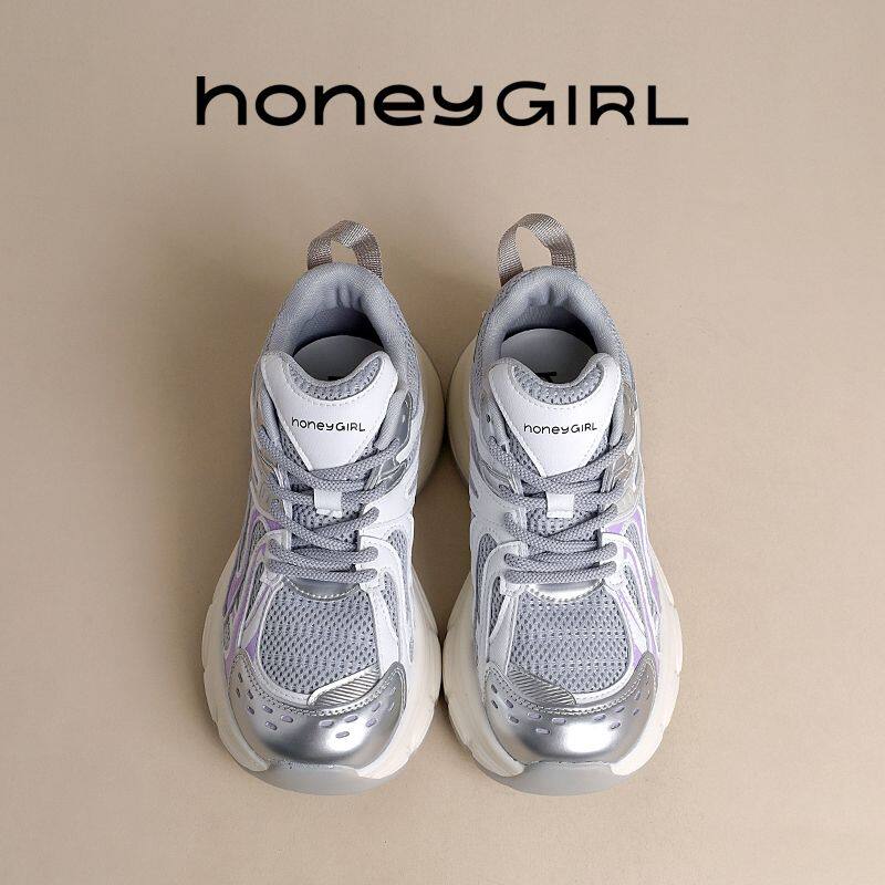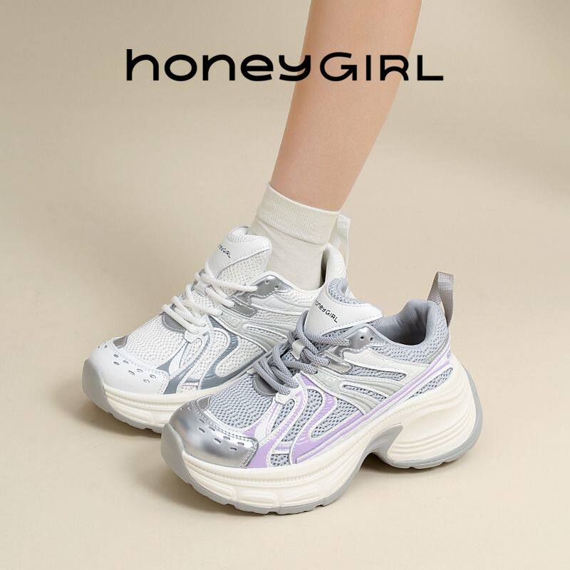 HoneyGIRL增高老爹鞋女2025年春夏春厚底复古透气百搭休闲运动鞋