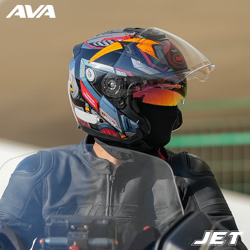 AVA头盔摩托车四分之三盔男女双镜片机车组合盔夏季半盔JET四季