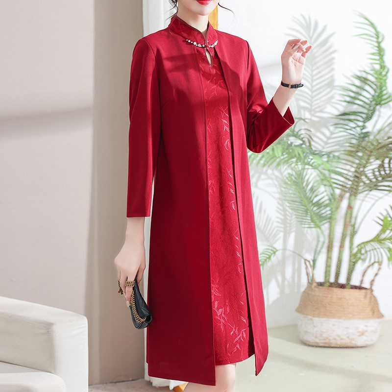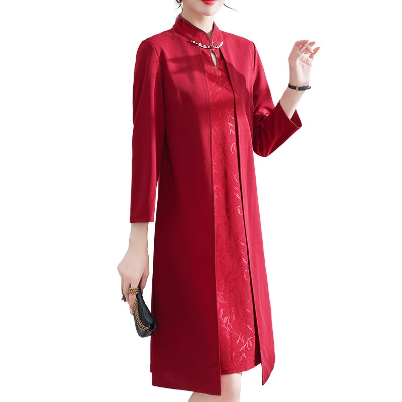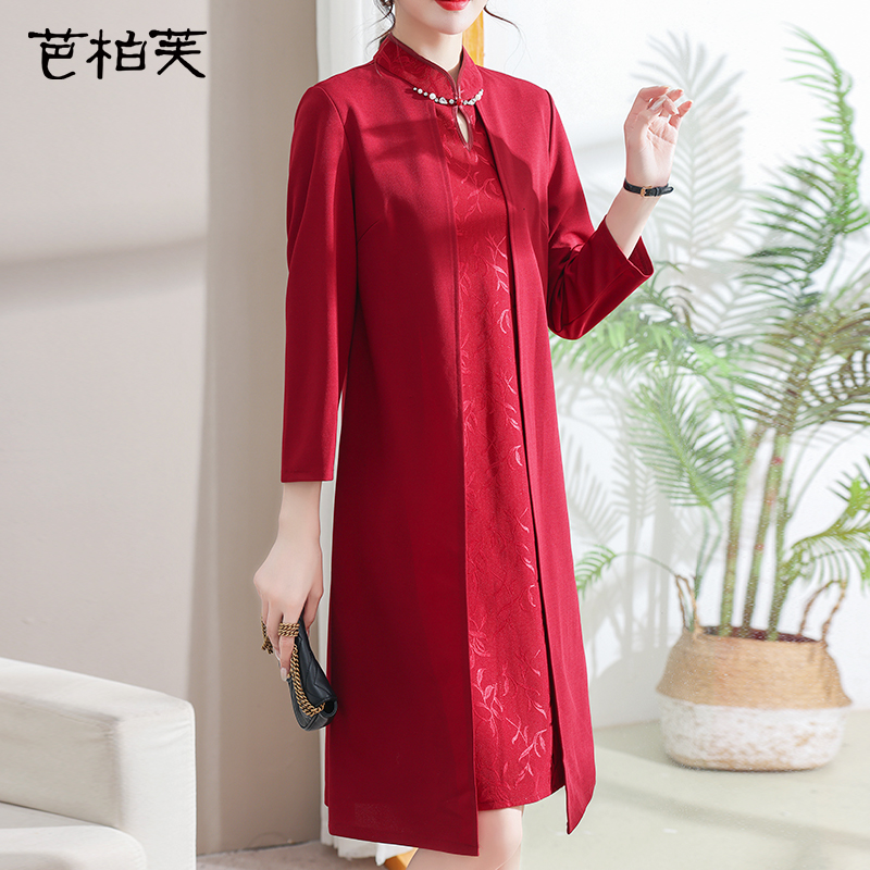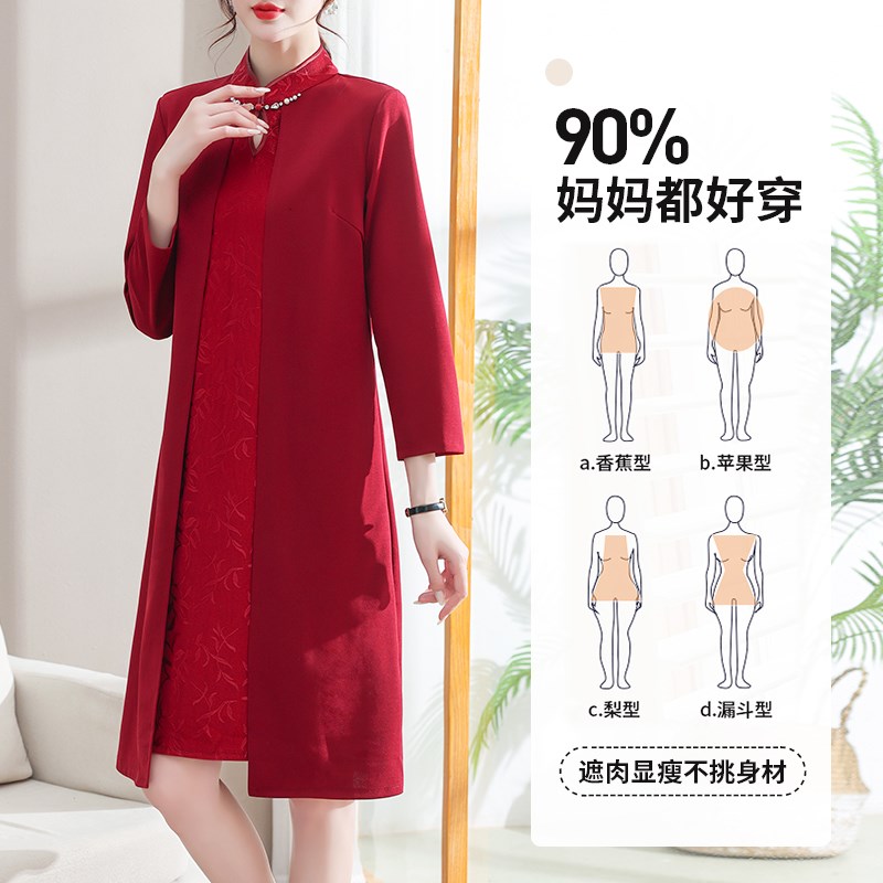 喜妈妈婚宴装连衣裙春秋季中老年女春装参加婚礼礼服套裙气质裙子