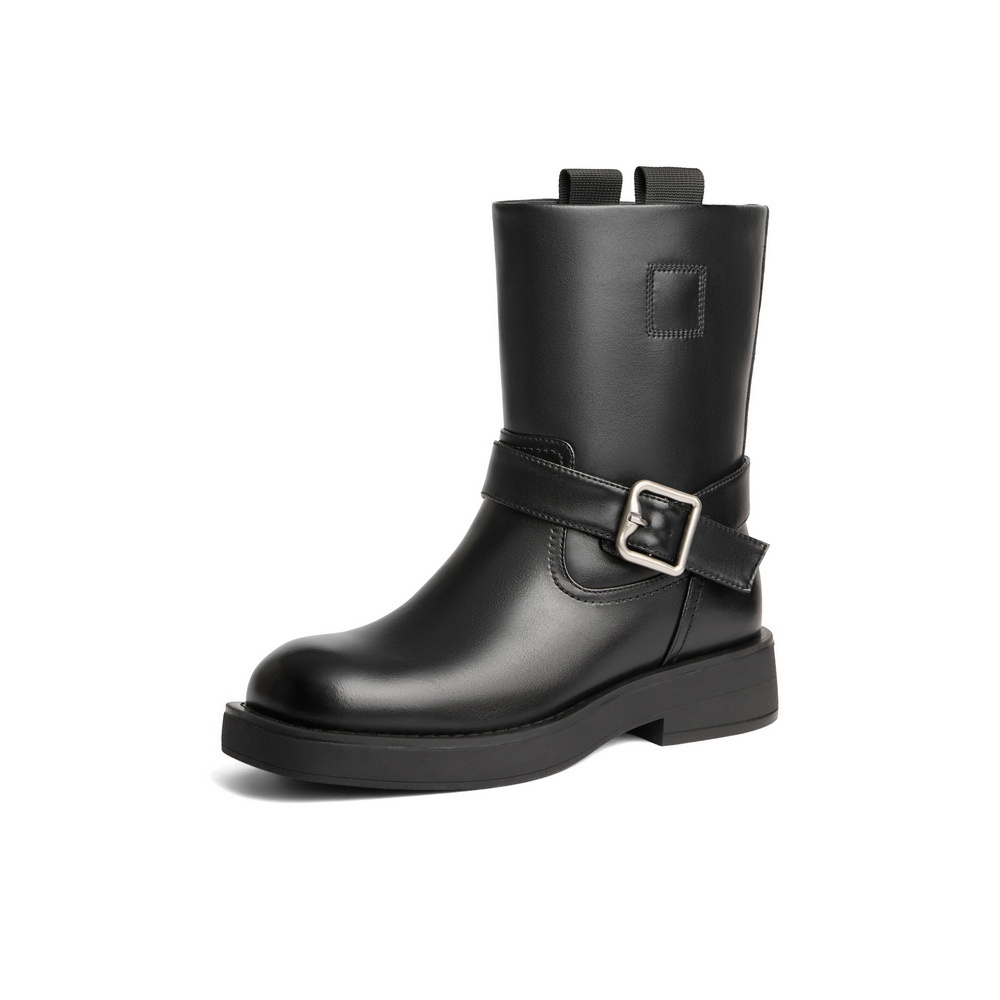百丽/Belle女靴2024冬季骑士靴女鞋低筒靴复古短靴西部靴B2172DZ4