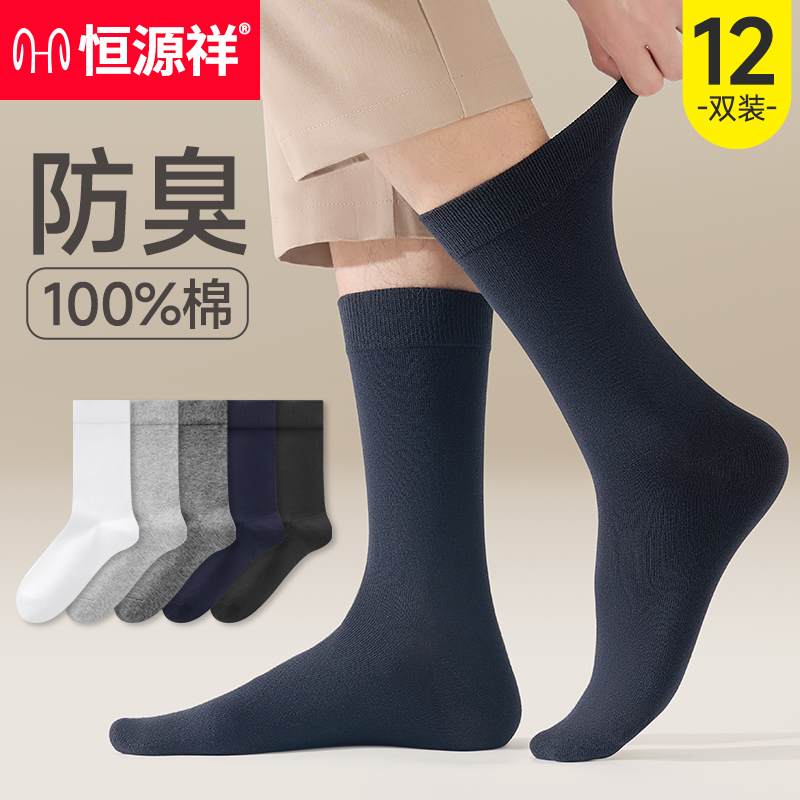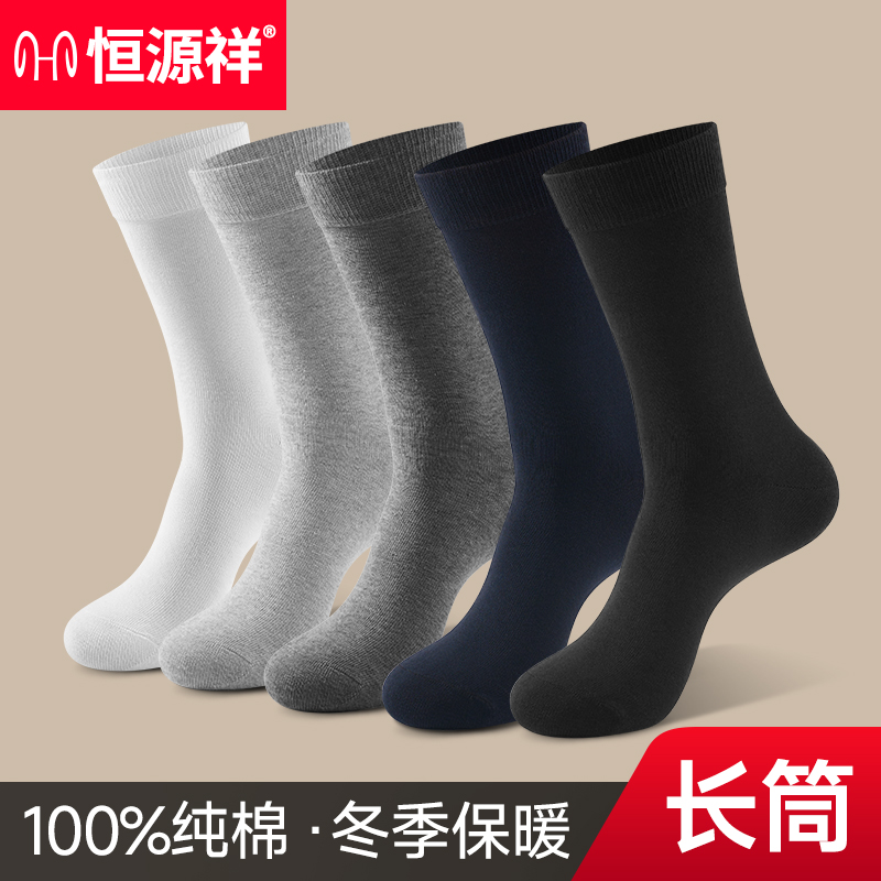 恒源祥男士长筒袜子秋冬纯棉袜黑色商务防臭抗菌长袜全棉高筒男袜