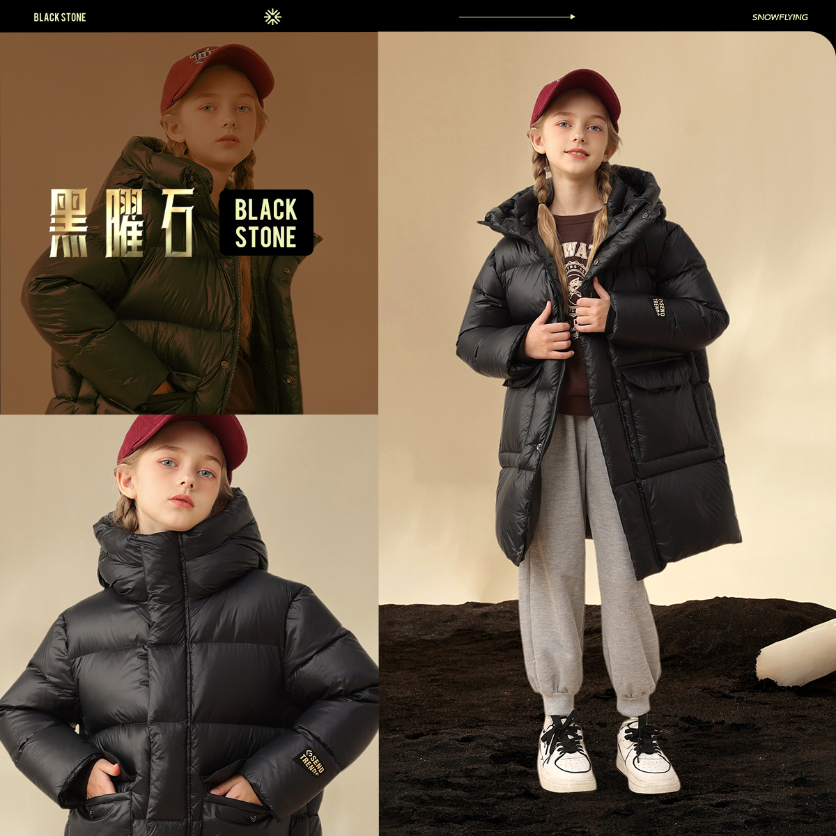 【黑曜石鹅绒服】雪中飞25冬新男女童装鹅绒童装羽绒服长加厚极寒