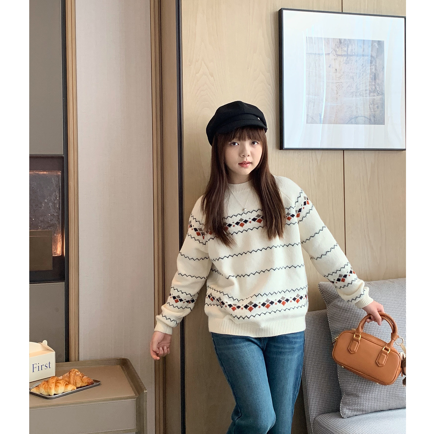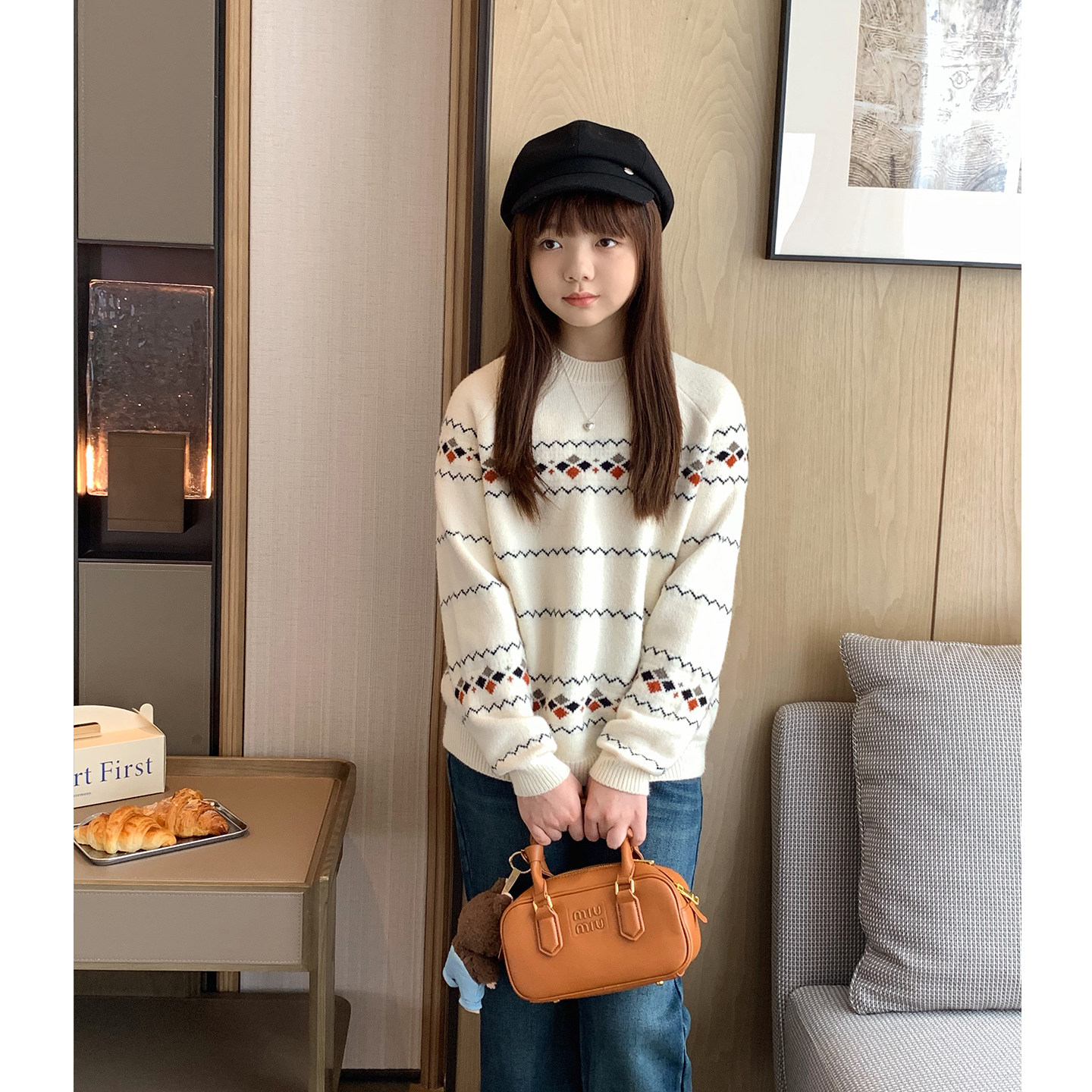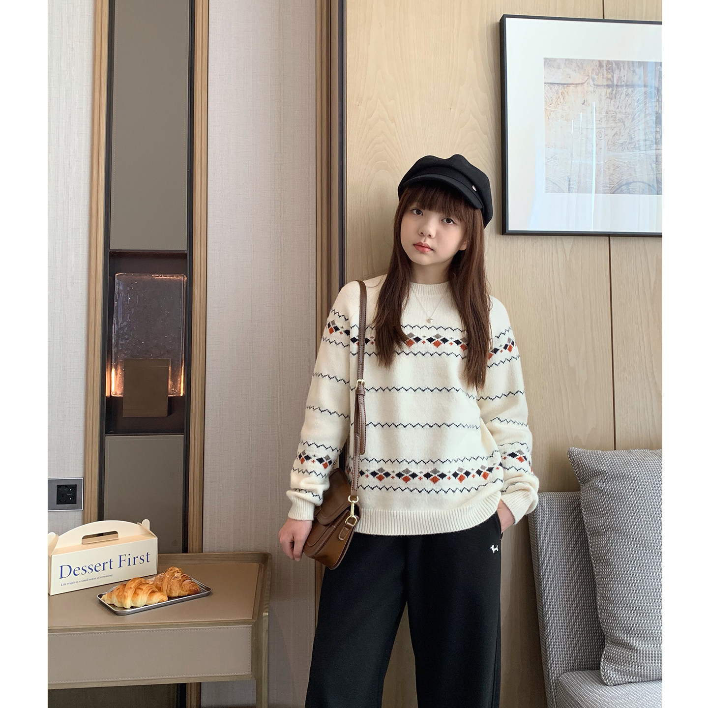 女大童温暖提花针织毛衣2025冬季新款初中生保暖圆领线衫韩版上衣