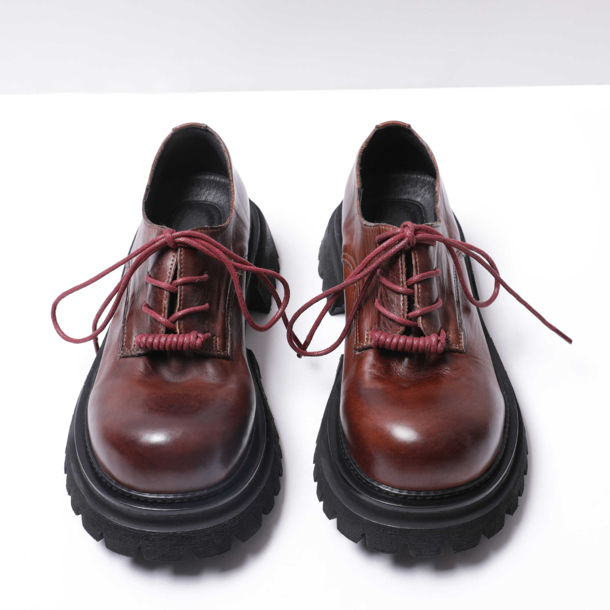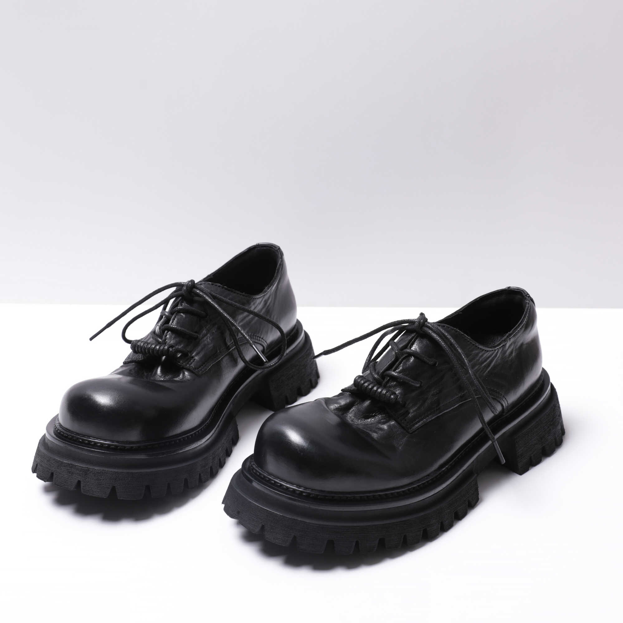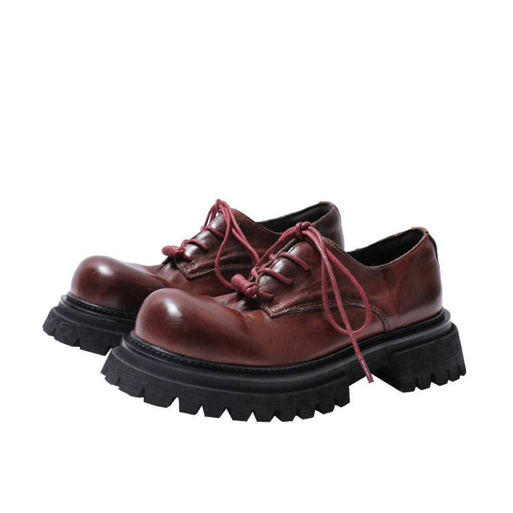 PJH 水洗牛皮 男女同款欧货大头厚底英伦风小皮鞋棕色复古德比鞋