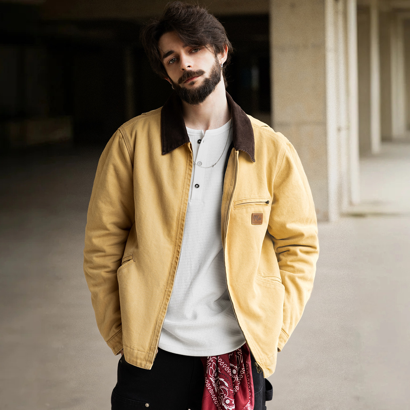 MRA男装 美式底特律棉衣服夹克巴恩风行政翻领谷仓帆布工装外套男