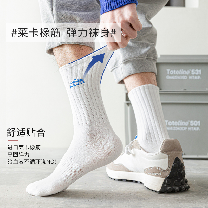 袜子男款纯棉青少年中筒100%新疆棉防臭防脚气7a抗菌秋春运动长袜