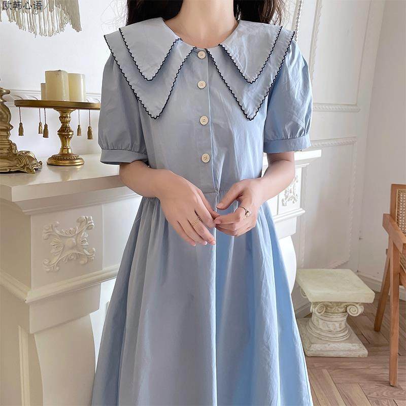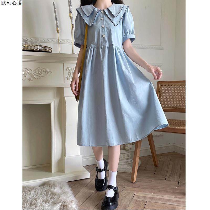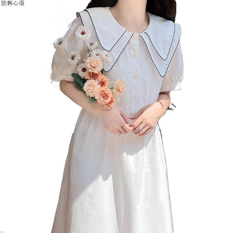 娃娃领连衣裙少女生夏装2025新款初中高中学生森系减龄中长款裙子