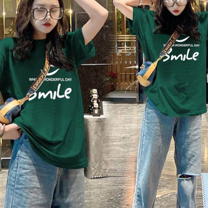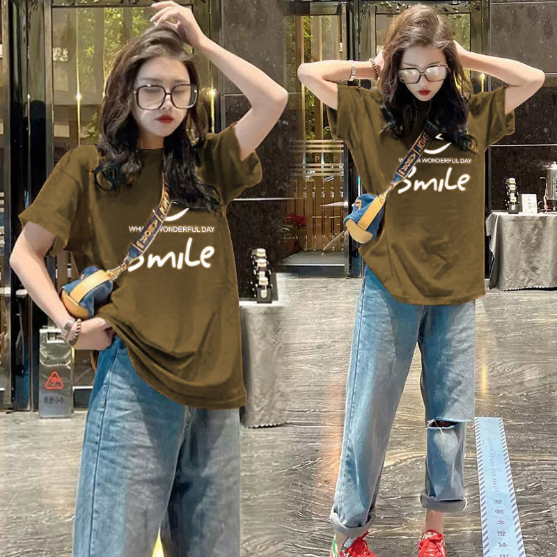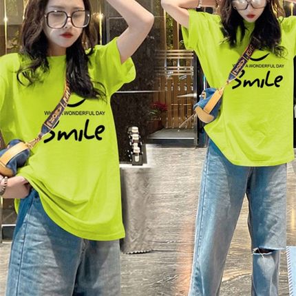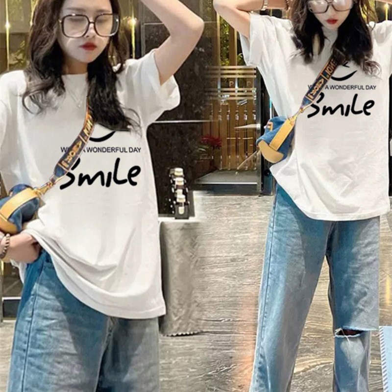 字母印花短袖t恤女2024春季新款欧货宽松圆领纯棉中长款体恤上衣
