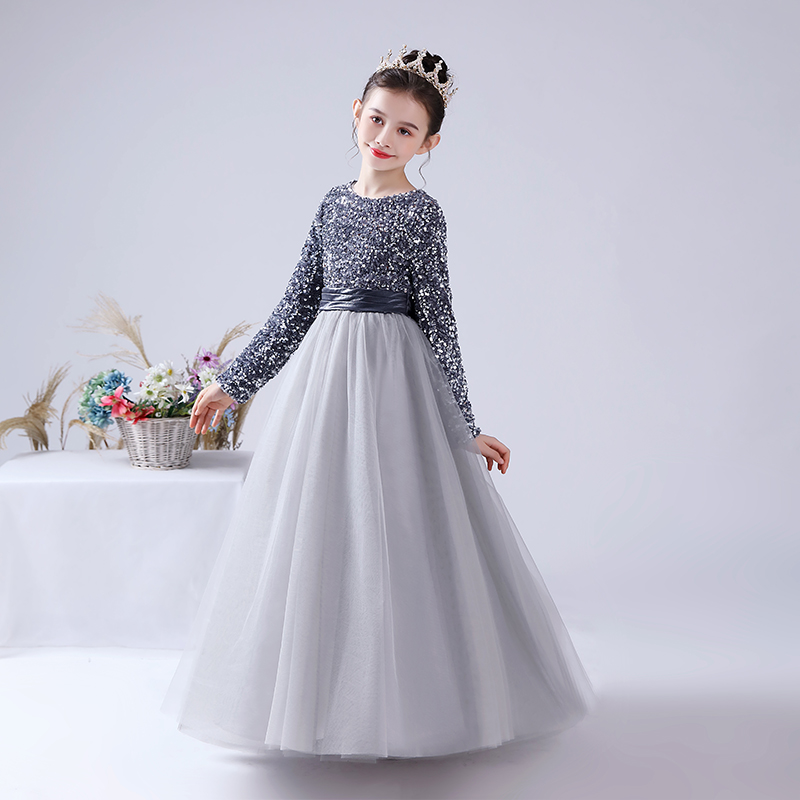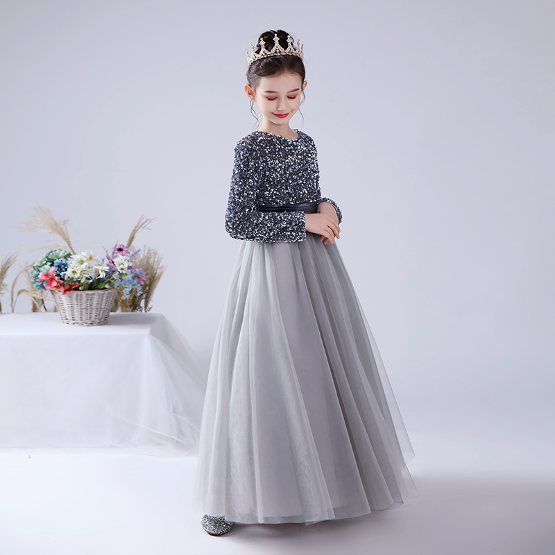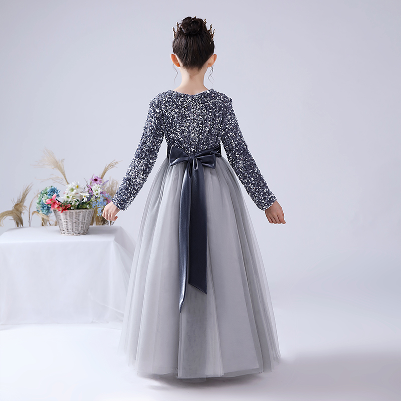儿童礼服公主裙新款长袖蓬蓬裙管弦乐演奏礼服女童团体演出礼服冬