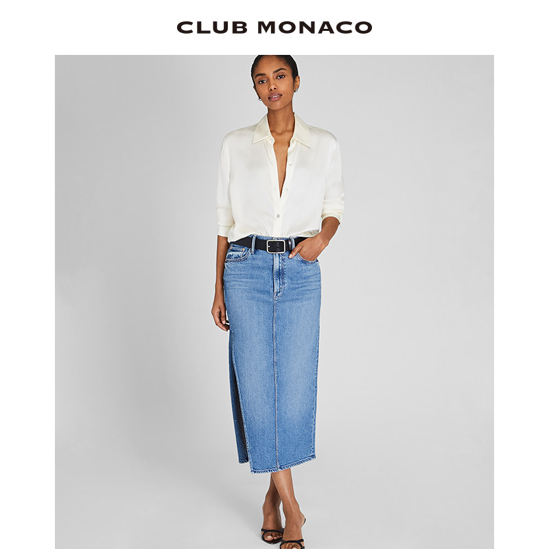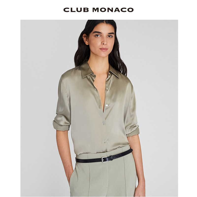 明星同款【100%重磅真丝】CLUB MONACO女装缎面通勤衬衫