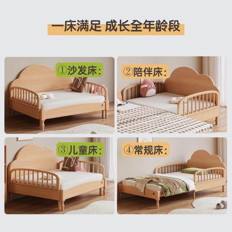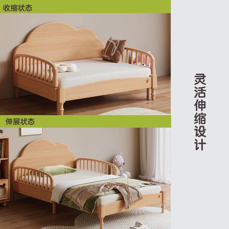 少年与树全实木榉木伸缩床小户型儿童床男孩女孩床1.2m环保床边床