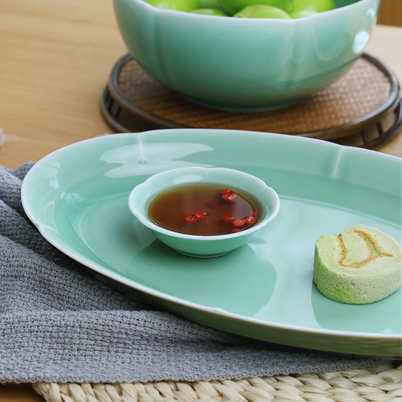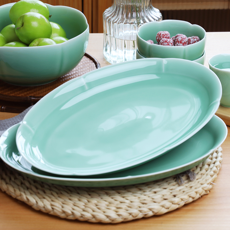 龙泉青瓷13英寸大号蒸鱼盘2025新款中式宋韵椭圆寿司盘子家用菜盘