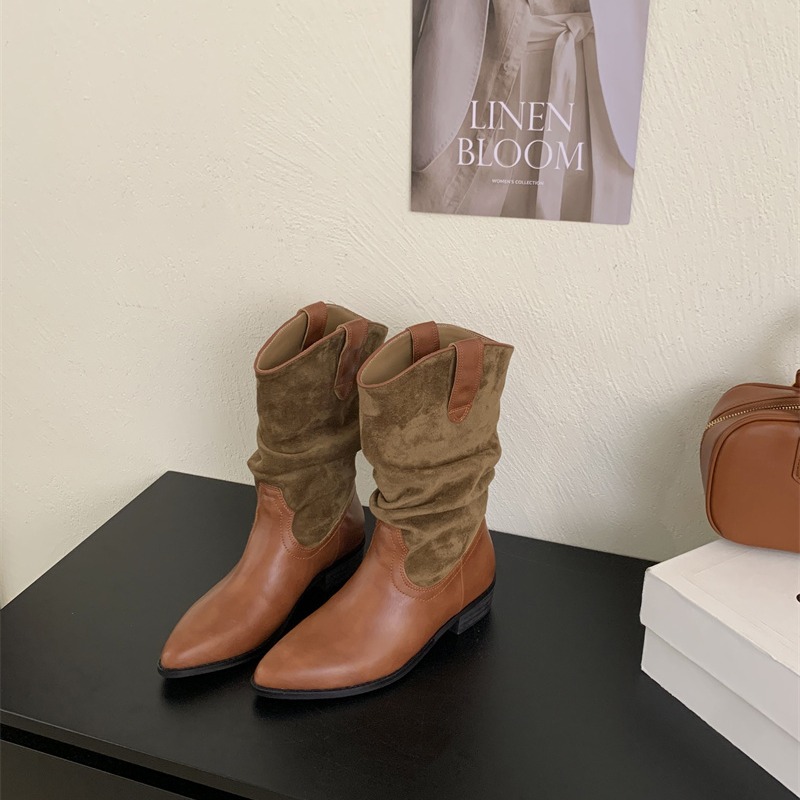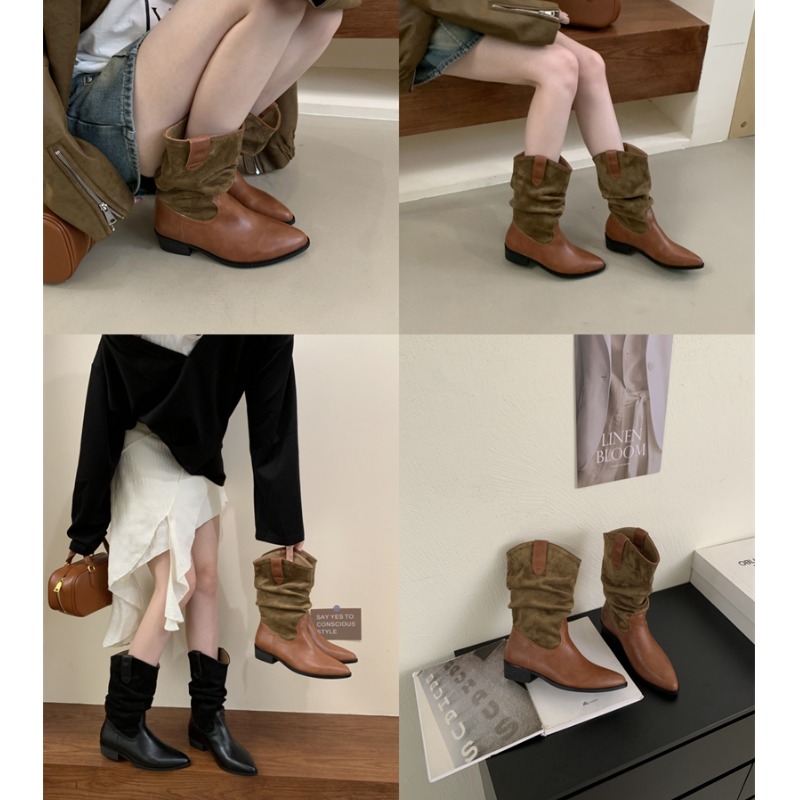 中筒靴女粗跟长筒靴2025年秋冬季大腿围靴子法式高跟褶皱堆堆靴