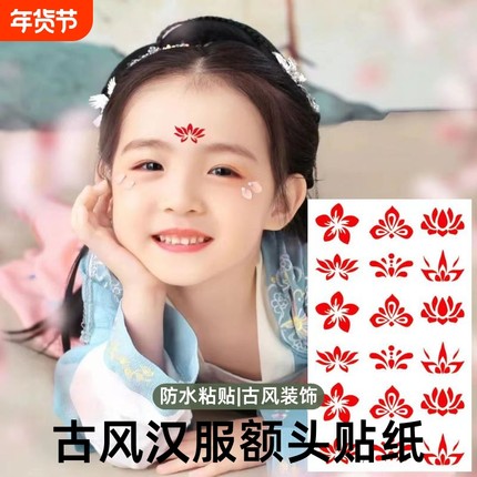 儿童眉心贴汉服古风女童古装额头印花纹身宝宝贴纸女水印卡通钻石水晶贴宝石水钻贴脸上防水粘贴手工