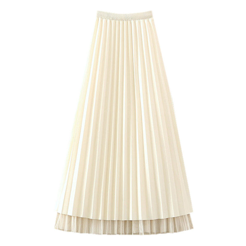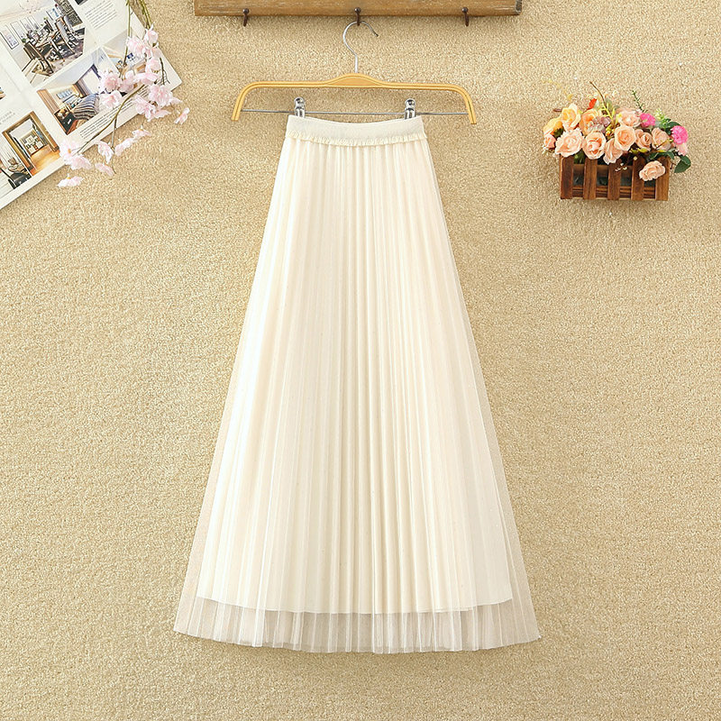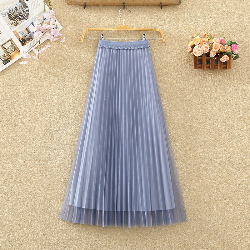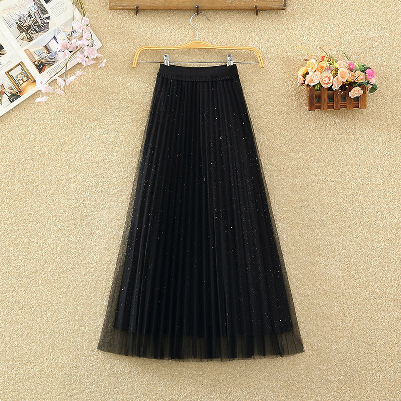 两面穿百褶裙网纱裙女春夏高腰亮片纱裙A字仙女裙子中长款半身裙