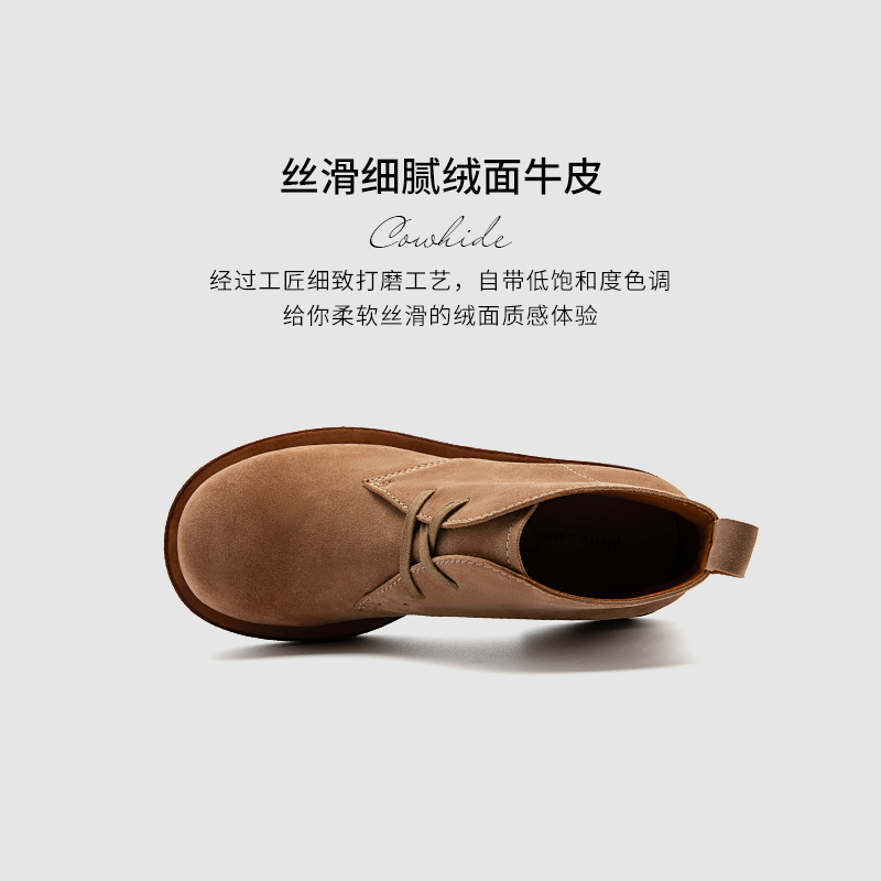 Pierre Cardin/皮尔卡丹男鞋真皮复合底大头牛绒面皮马丁靴皮靴